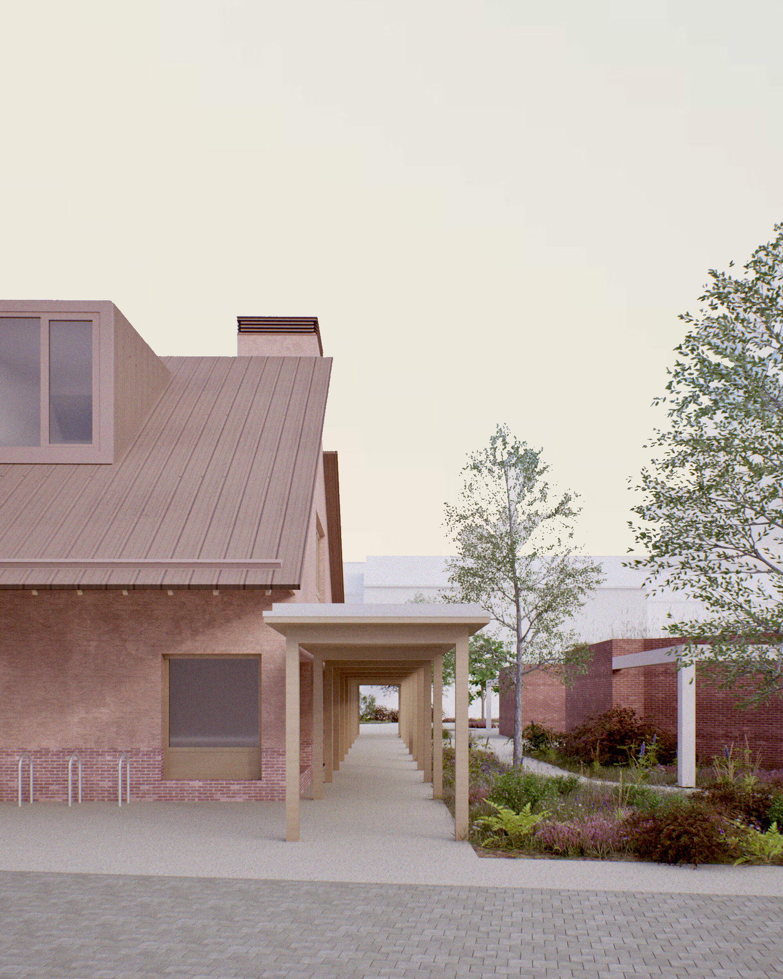 Ainsi développées sur l’ensemble du projet, l’utilisation et la réinterprétation d’éléments, de formes et de matériaux traditionnels intègrent le bâtiment dans son contexte en évoquant un sentiment de familiarité.