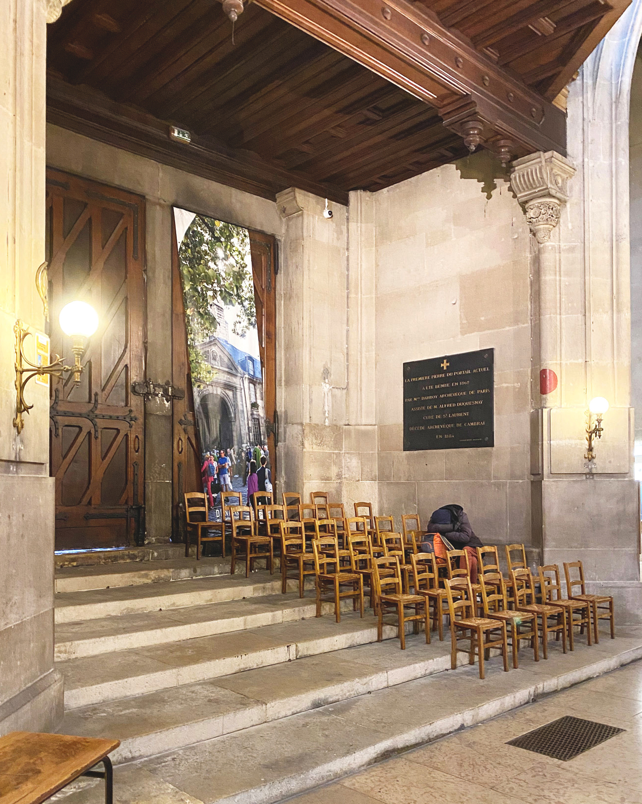 La création d’une nouvelle entrée pour l’Église Saint-Laurent de Paris prolonge les transformations historiques du site et vise à adapter le monument au contexte et aux usages en transformation. S’inscrivant avec sobriété dans les proportions de l’édifice et dans la tradition du mobilier liturgique, la nouvelle paroi accompagne le regard et invite à rentrer, rendant l’église plus ouverte et inclusive.